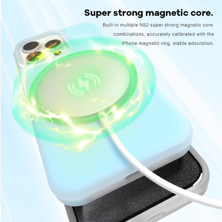 Equipado con succión magnética Magsafe, tiene una fuerza de succión magnética buena y estable, no hay necesidad de preocuparse por caídas, lo que le proporciona un mejor disfrute al usar su iPhone.